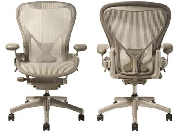 O modelo Aeron (ano 1992), projeto de Donald Chadwick e William Stumpf, representa o top recomendado para cadeiras de escritório. Possui base e estrutura de alumínio reciclado e poliéster reforçado com fibra de vidro; o assento e encosto são revestidos com telinha de malha de poliéster; há regulagem para assento, encosto e braço; base giratória e apoio extra para a coluna.