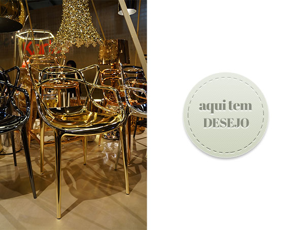 11 junho, 2014Neste clima de Copa do Mundo, com expectativa de ganhar a taça, pensei na cor dourada. Daí me lembrei que vi a nova versão da cadeira Masters, na cor dourada, com acabamento em metal, lançada na Semana de Design de Milão, este ano. Também tem outras cores, Pra quem acompanha o blog, já contei a história da cadeira Masters aqui, projeto do designer Philippe Starck. Tenho a versão na cor mostarda, aqui no escritório, mas gostaria de registrar, mais uma vez, este objeto de desejo aqui no blog.