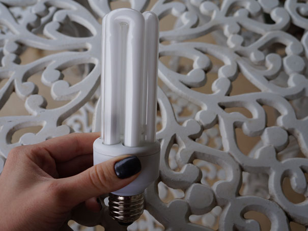 Por isso, atenção! Nunca descarte uma lâmpada fluorescente em um lixo comum. O correto é deixar a lâmpada separada e levar para um lugar que garanta a reciclagem da lâmpada.