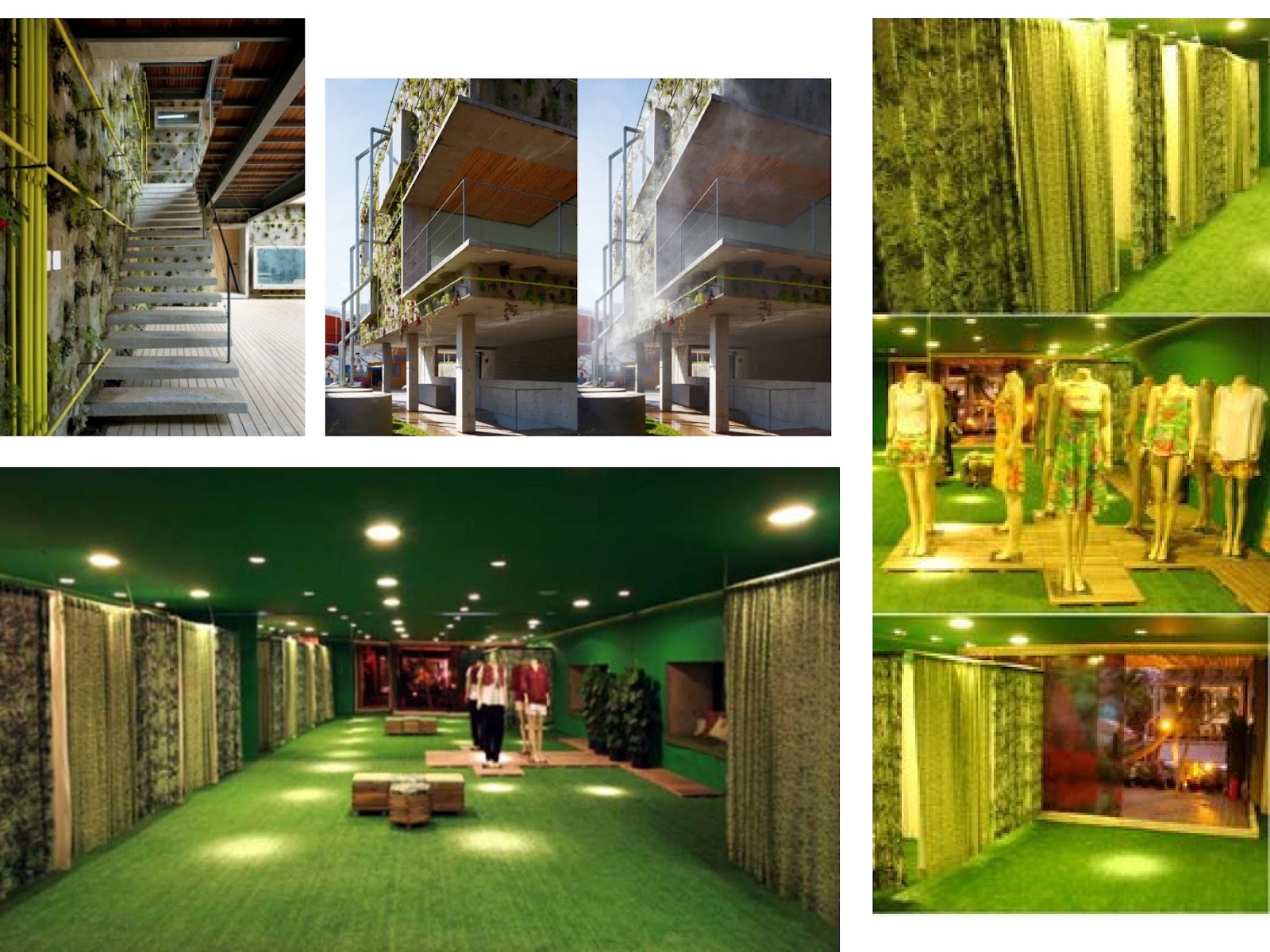 Loja Farm, autor do projeto escritório Tryptique, predomina o verde para sensação de bem estar.