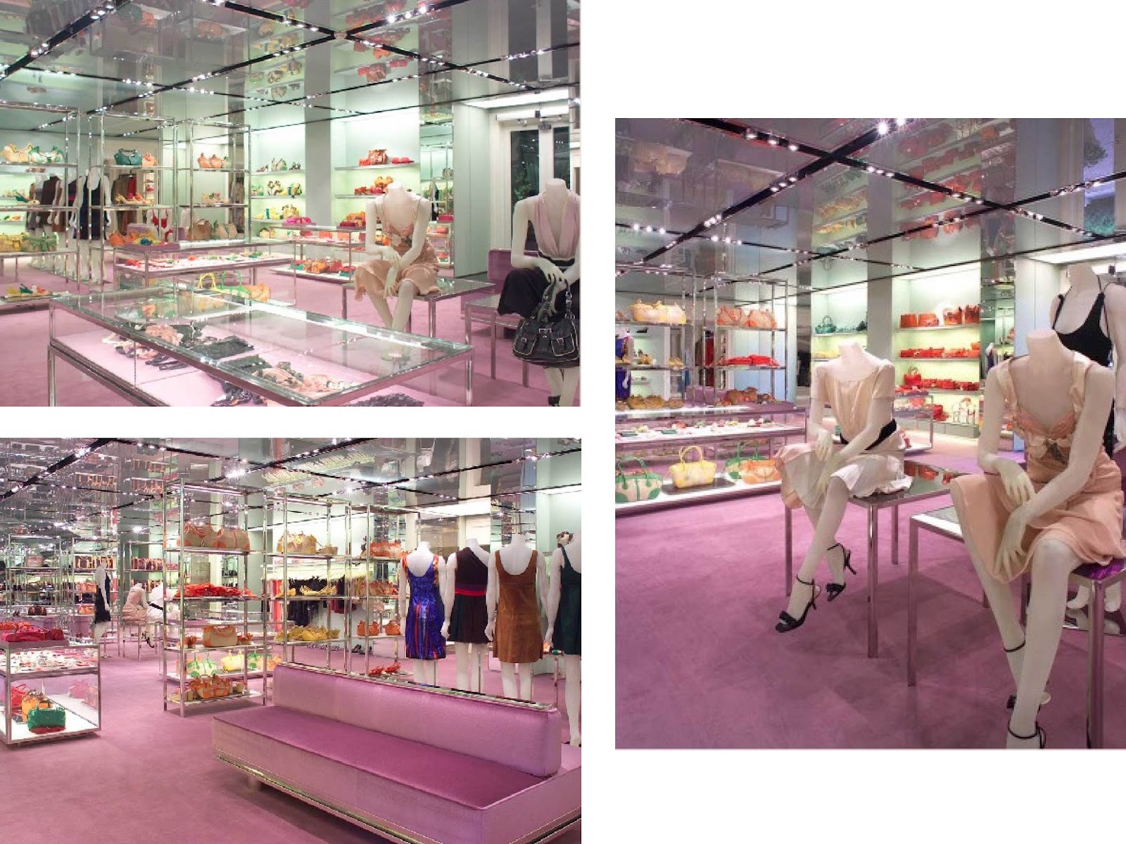 Loja Prada Daslu São Paulo, autoria Studio Baciocchi, rosa predominante para sensação de destacar o lado feminino.