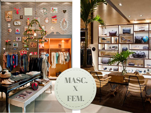 Bob. A loja feminina é sim muito mais cheia de produtos e talvez uma dica seria o posicionamento da vitrine. A mullher entra tanto na loja feminina como na loja masculina. No caso de uma loja mista (masculina + feminina), na vitrine devemos focar primeiramente no público masculino para convidá-lo a entrar e a parte feminina pode ficar mais para dentro da loja, pois a mulher circula dentro da loja sem problemas. Já o homem não…
