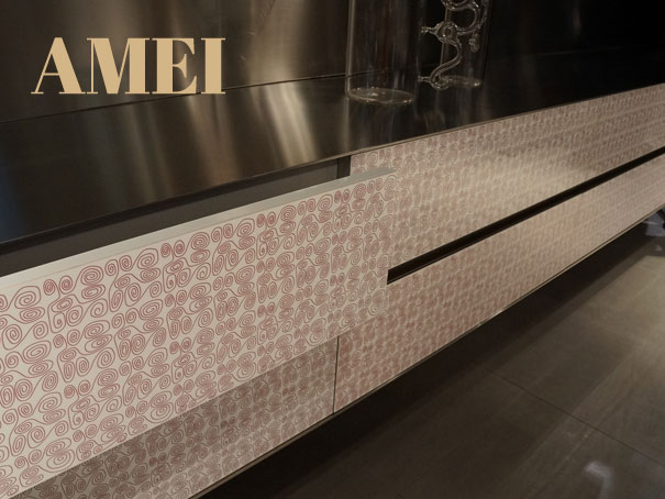Gostei de ver o stand que projeta o acabamento da marcenaria. Há um armário real montado ( na cor branca) e a projeção vai mudando o acabamento final: seja madeira, inox, colorido…Este foi o “show” destaque da feira.