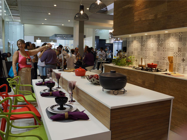 Tudo bem pessoal? Começou a 12ª edição da Exporevestir, feira conhecida como a Fashion Week da construção civil em São Paulo, entre os dias 11 a 14 de março. É um dos principais eventos mundiais do setor em soluções para acabamentos voltados para arquitetura, interiores e construção civil. O evento é praticamente uma vitrine do que será lançado durante o ano no mercado brasileiro e este ano são mais de 40 mil metros quadrados, destribuídos ao longo de 250 stands que representam as principais marcas de produtos nacionais e internacionais. Os produtos são diversos e mostram o que há de mais avançado no setor de cerâmicas, porcelanatos, pastilhas, rochas, mármores, laminados, madeiras, soluções para revestimentos, louças, metais… Além dos Stands, a feira oferece debates, seminários e palestras para profissionais da área como o Dia do Design de Interiores, Dia do Arquiteto, Dia do Construtor e dia do Engenheiro Civil, apresentando convidados renomados de cada área para discutir temas específicos e atuais. A estimativa é que a feira receba este ano aproximadamente 48 mil visitantes.  Hoje quero mostrar o que vi de interessante neste primeiro dia. Olha só: