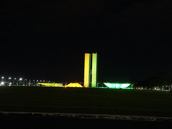 13 junho, 2014Tudo certo por aí? Em clima de Copa de Mundo, o Brasil inteiro torcendo pela Seleção. A Copa vai ser uma boa oportunidade para turistas estrangeiros e brasileiros conhecerem outras cidades do nosso imenso Brasil. Para quem não conhece Brasília, nossa capital federal, uma boa dica é passear, à noite, pela Esplanada dos Ministérios, e conferir os monumentos, todos iluminados de verde e amarelo. Bom, tirei algumas fotos do meu passeio pela Esplanada. Pois afinal, ter Copa no Brasil é, sim, um fato histórico! Passamos pelo primeiro adversário,com uma vitória de tirar o fôlego! Que venham os outros!