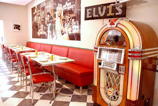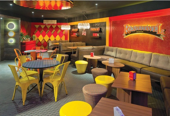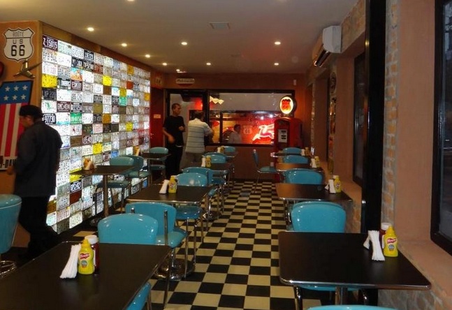 A decoração retrô fica ótima em restaurantes. Memphis Burger em São Paulo.