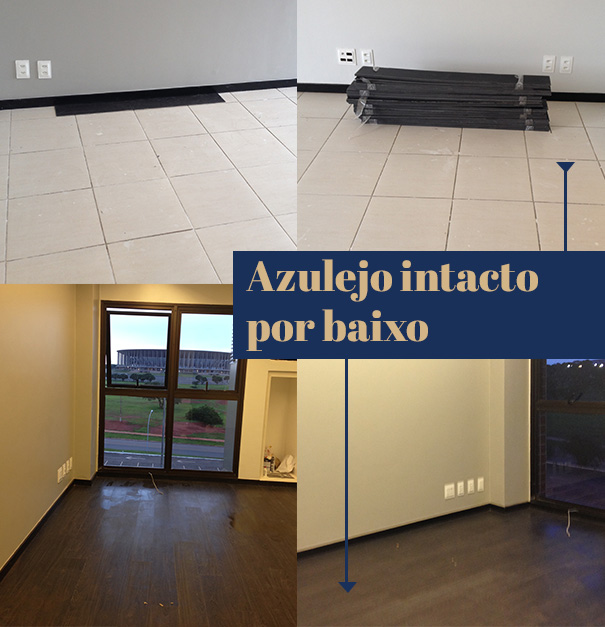 Dica 01- Piso: Instalação do piso porcelanato extrafino em cima do revestimento existente. Reduz bastante a quantidade de entulho e também o quebra-quebra na obra. O piso vinílico ou o flutuante também é uma boa alternativa para ser instalado sobre o piso existente.
