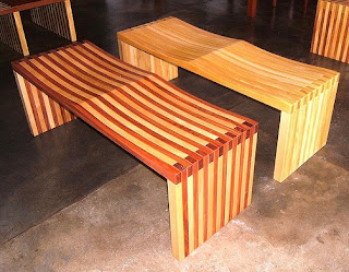 Acima, banco ressaquinha do designer Maurício Azeredo (ganhador de alguns prêmios de designer) que possui ótimos trabalhos com madeira na cidade de Pirenópolis, Goiás. Suas peças possuem madeiras como cumaru, muirapiranga e pau-ouro.
