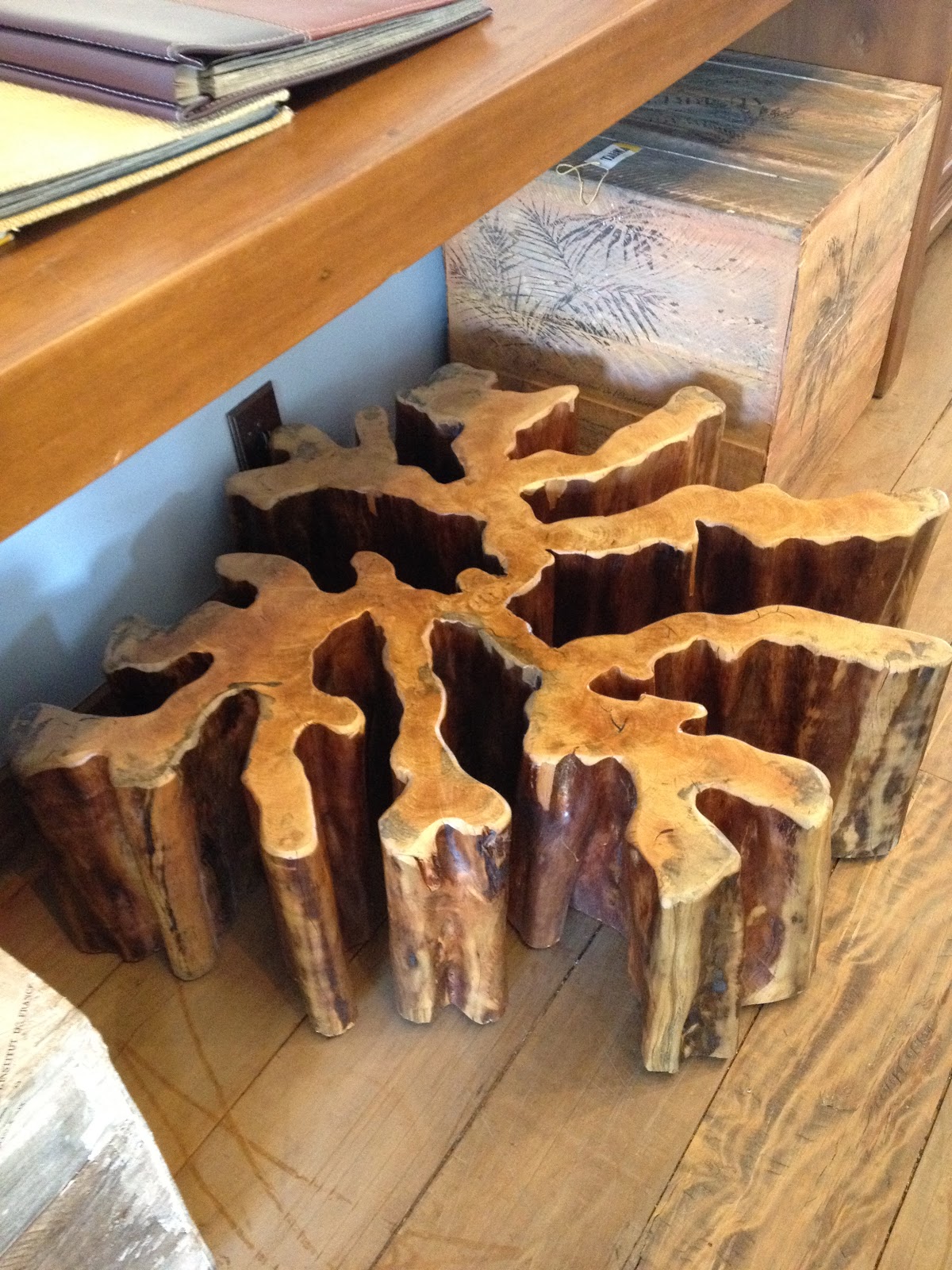 Tronco de madeira Quariquara. Boa solução para salas de estar e pode ficar interessante com um tampo de vidro.