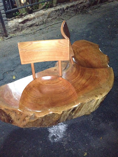 Acima, banco ressaquinha do designer Maurício Azeredo (ganhador de alguns prêmios de designer) que possui ótimos trabalhos com madeira na cidade de Pirenópolis, Goiás. Suas peças possuem madeiras como cumaru, muirapiranga e pau-ouro.