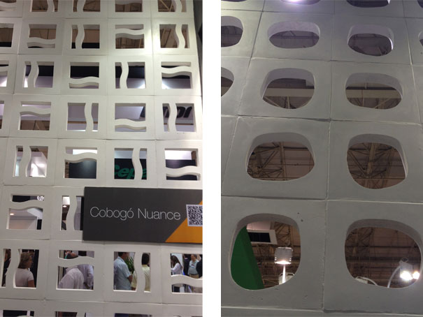 No stand da Solarium, painéis cobogós com diferentes desenhos paras as aberturas. Achei interessante.