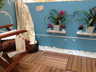 Gostei bastante do deck de Ipê pintado com os seixos brancos. A parede em azul deixou o espaço bem calmo.