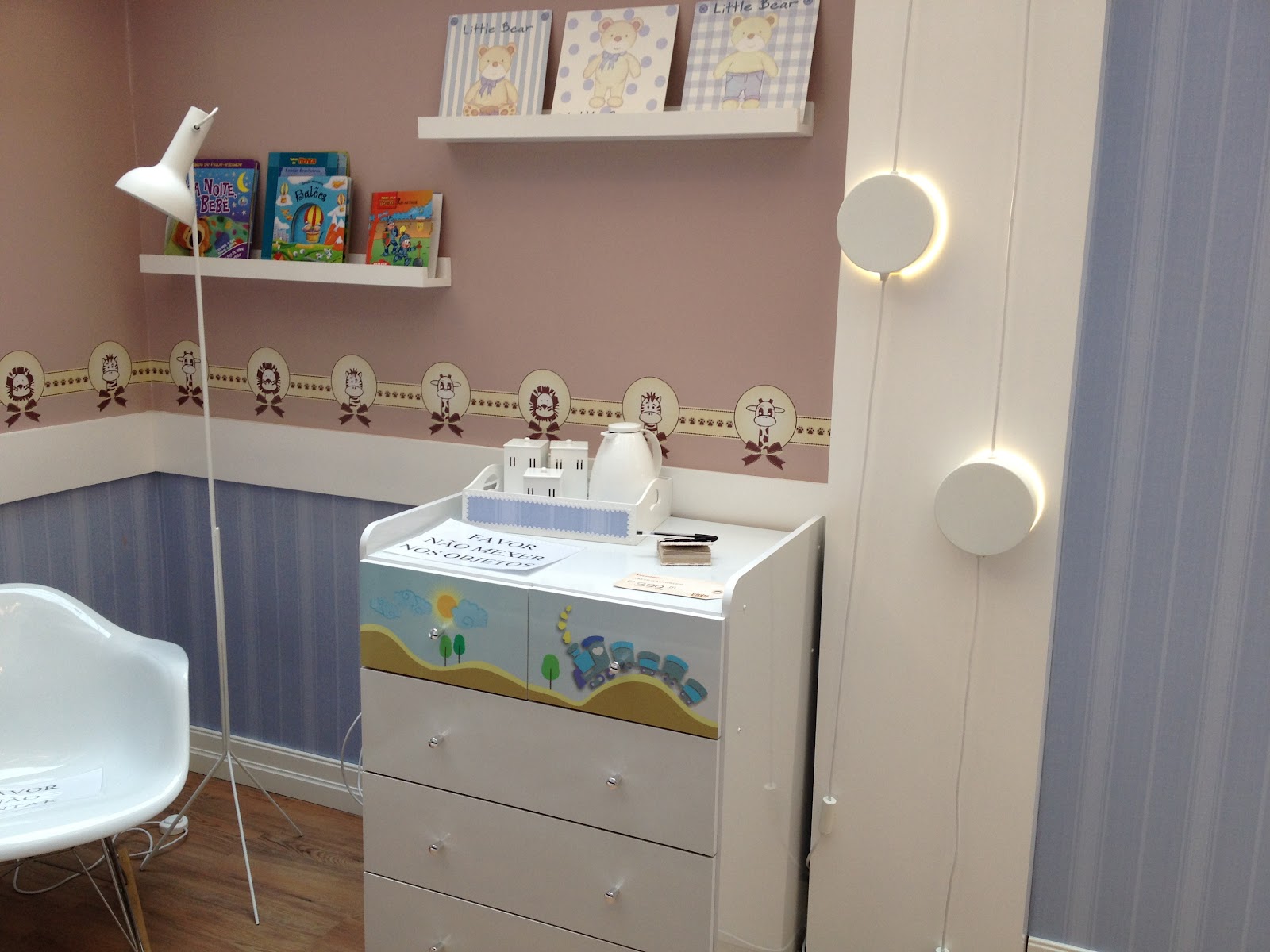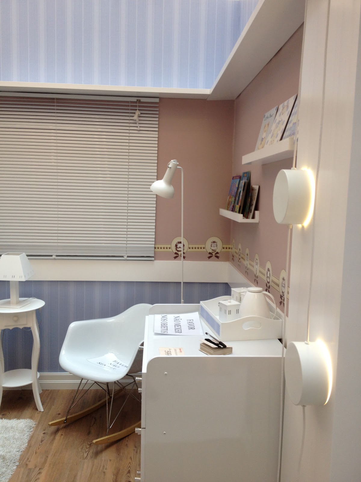 Adorei o piso vinílico na cor amendoim, criando uma harmonia interessante com os papéis de parede.
