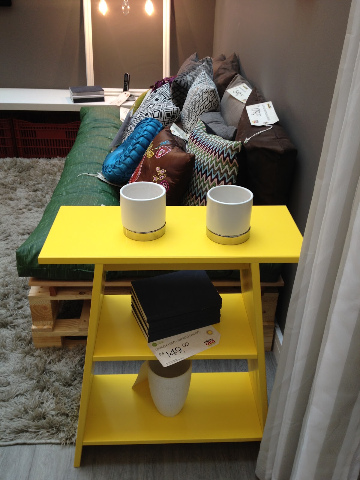Muito charmosa essa mesa lateral amarela.
