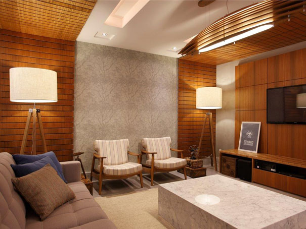 (Fonte: Casa Cor Rio de Janeiro 2013. Gostei muito do ritmo criado com os embutidos e as lâmpadas na vertical)