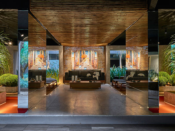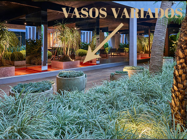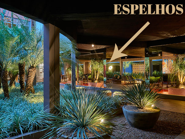 Este ano, o paisagismo da Casa Cor Brasília ganhou grande destaque e deu vida ao pátio da mostra.  Gostei dos espelhos (deixando  a circulação bem convidativa)  e do deck de madeira, com várias espécies de plantas comopalmeiras, dracenas, nolinas e buxinho, deixando o prédio, que é todo em concreto, mais acolhedor.